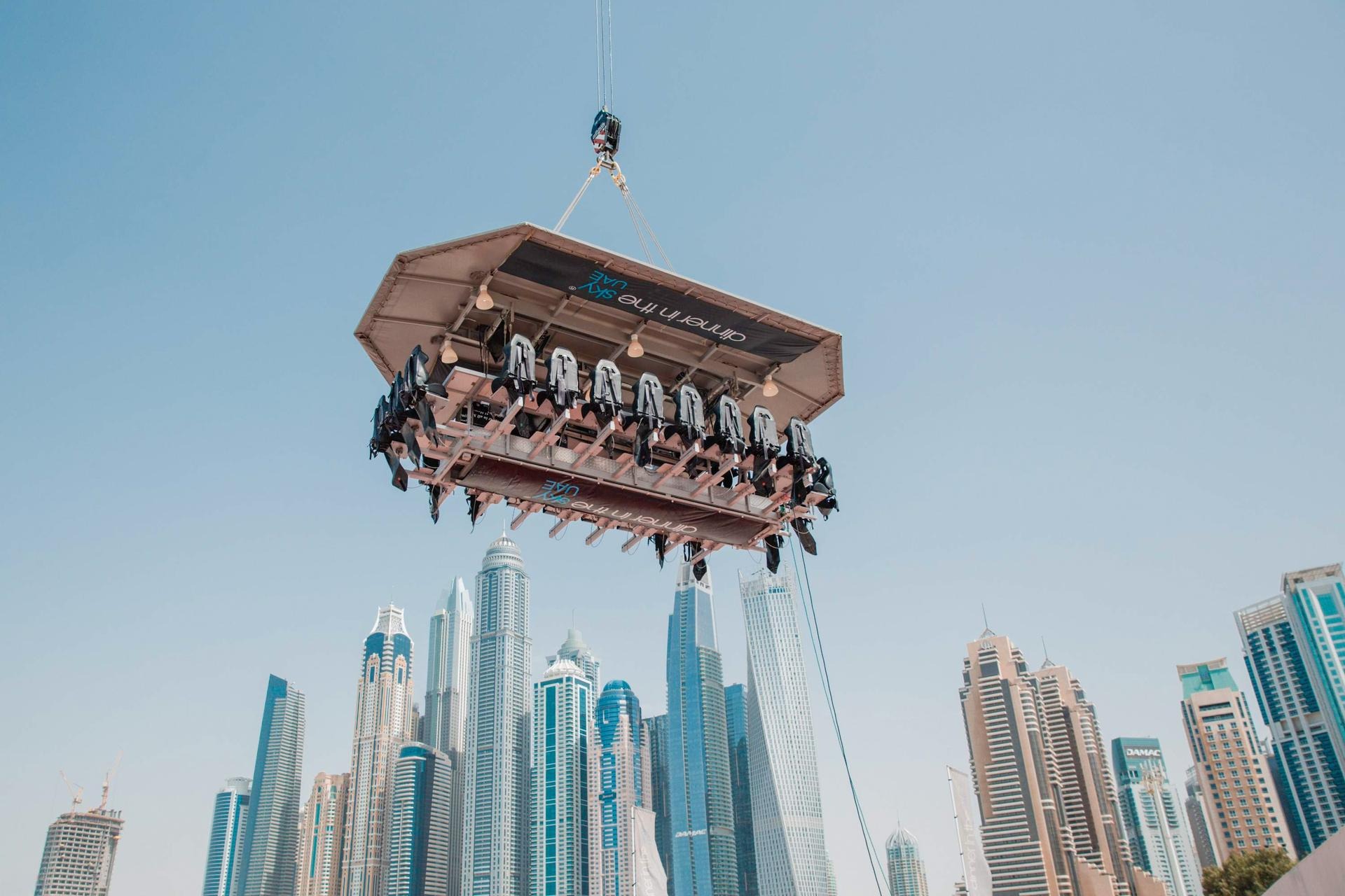 登上50米高的悬浮餐桌,在迪拜享受激动人心的用餐体验!坐在设备齐全的座位上,观看专业厨师在您面前烹制菜肴。千万不要错过这次安全刺激的冒险,欣赏迪拜天际线的壮丽景色,并欣赏其最著名的地标,例如朱美拉岛、迪拜码头和帆船酒店。