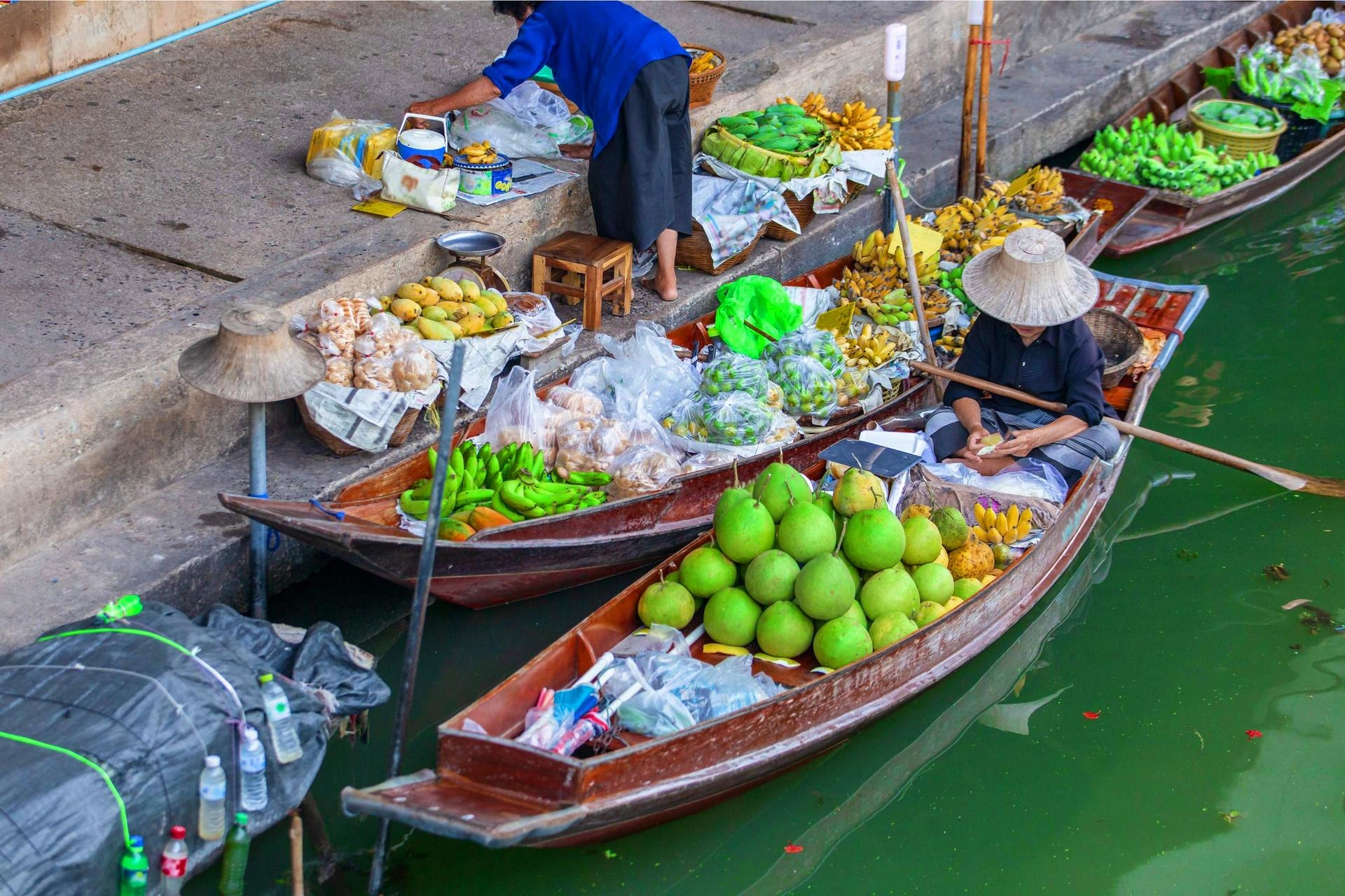 在传统氛围和新鲜水果的香气中探索水上市场