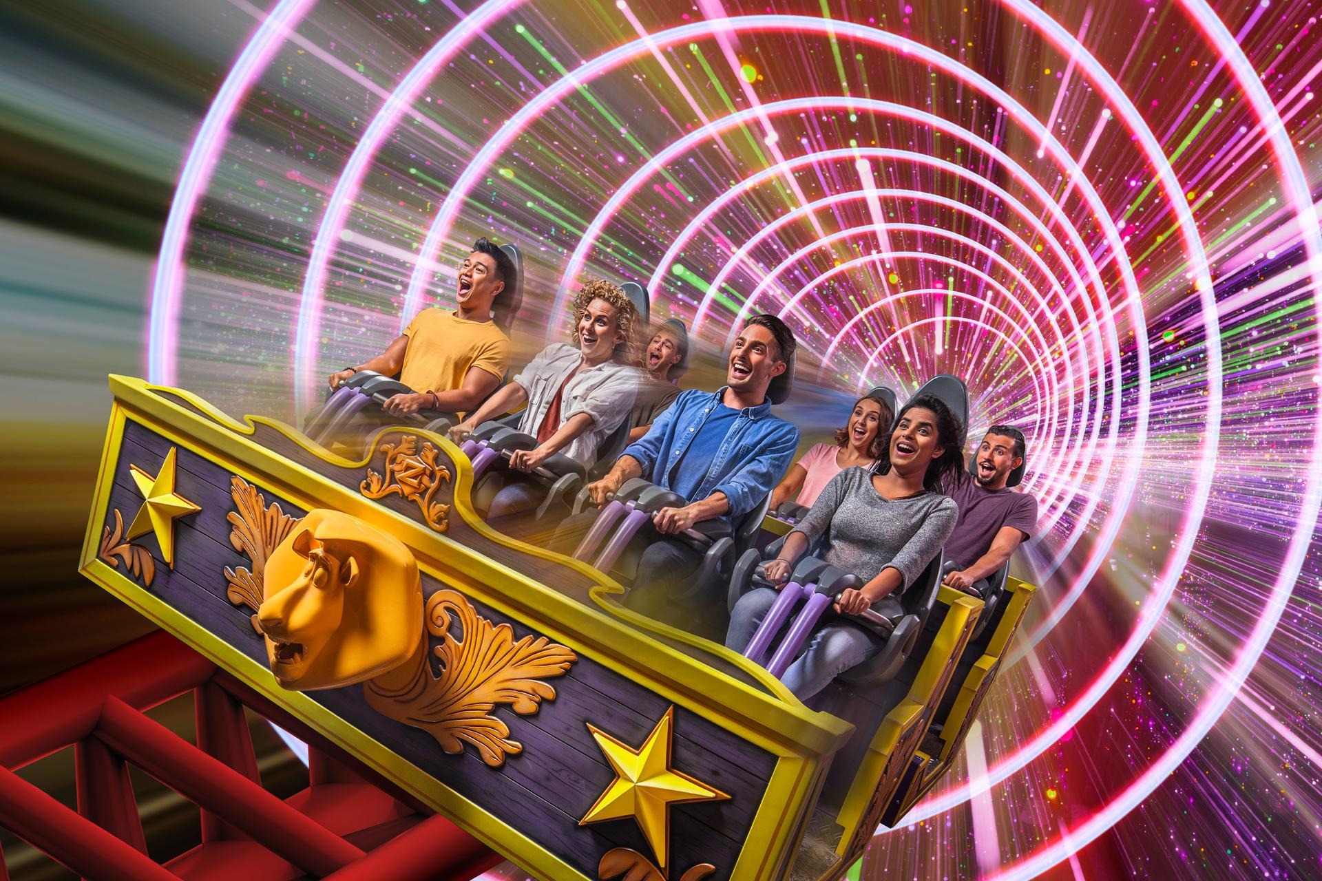 Enjoy unforgettable experiences from your favorite movies at Motiongate Dubai, the family-friendly theme park! For Hunger Games fans, don't miss the Panem Aerial Ride or the Capitol Bullet Train. Experience the thrills of Underworld 4 with all your senses and join the Ghostbusters in the Battle of New York. Kids will love Madagascar Mad Pursuit, Hotel Transylvania, and Smurfs Village! In addition to these experiences, don't miss the live shows and walk-through themed play areas like Camp Viking, Woodland Play Park, and Smurf Berry Factory. Spend an unforgettable day with your family at Motiongate Dubai!